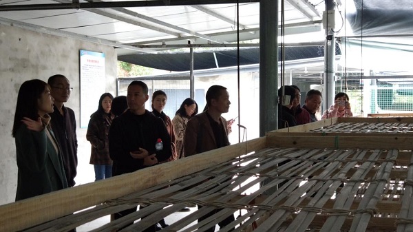 培训会议结束后,参会人员前往天虹公司“千鹤桑田”文化广场、标准化养蚕大棚、“千鹤丝语”蚕桑文化体验园等地进行实地参观考察。