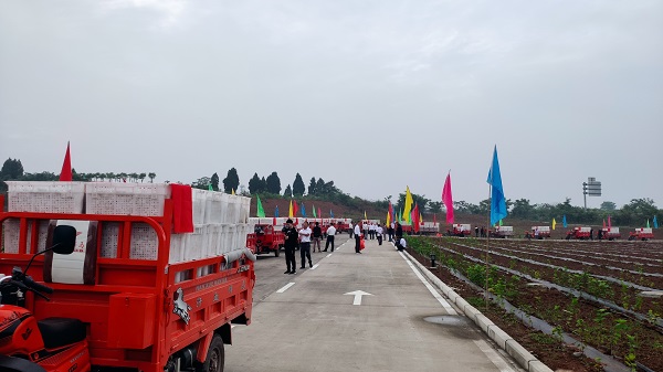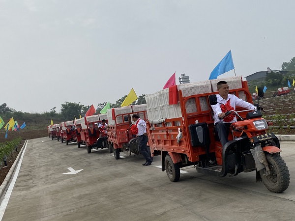 5月28日上午8时58分,伴随着万响鞭炮声,绵阳天虹丝绸蚕茧收烘中心正式开业。各乡镇部分养蚕大户、天虹丝绸机关员工及蚕茧收烘中心全体员工参加开业仪式。养蚕大户们身披大红花,驾驶着一辆辆装满鲜茧、铺着红布的机动三轮车,排成长龙,缓缓驶入蚕茧收烘中心。选茧台、仪评室身影忙碌,烘茧机机器轰鸣,蚕农们、员工们脸上洋溢着丰收的喜悦,涪城区2021年蚕茧收购工作就此拉开序幕。